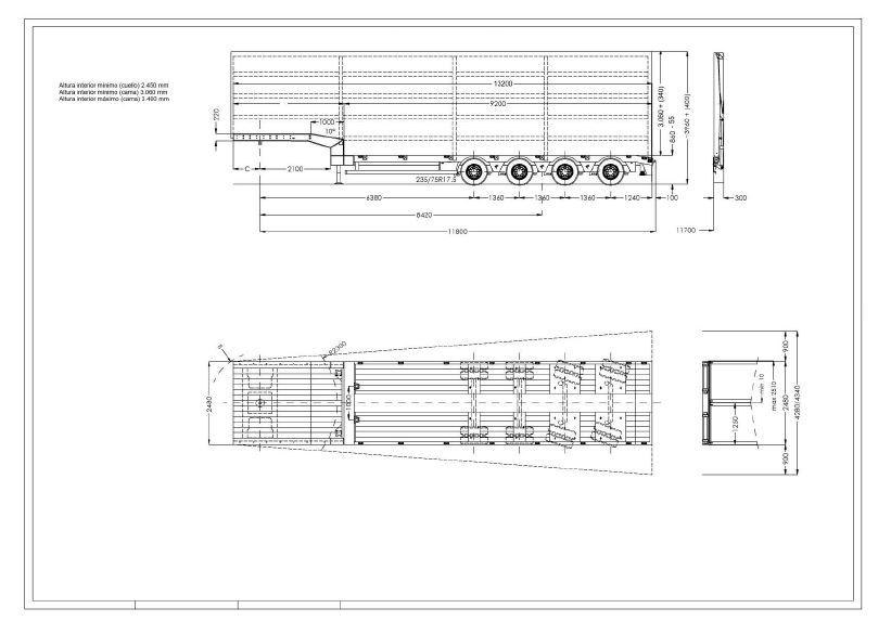 - Ancho de la plataforma: 2.450 mm / 4.330 mm